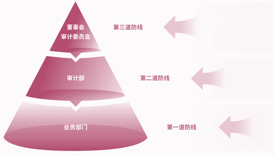 为有效防范贿赂与贪污等商业道德风险,,公司建立了由“董事会审计委员会、、、审计部、、业务部门”组成的三道防线,,全面落实公司商业道德合规工作,,并确保《商业道德行为准则》的有效执行。。。。公司审计部在董事会审计委员会的指导下定期评估、、、、审查公司的合规运营情况及准则的履行情况,,,并对公司及所有子公司开展商业道德行为审计。。。公司保证商业道德行为准则审计工作每三年覆盖公司及其所有控股子公司的全部业务范围。。。