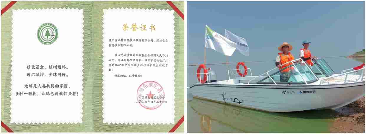 2024年6月,,,,公司携手中国绿色碳汇基金会,,,,开展“保卫江豚”公益活动,,,,向基金会捐赠人民币20万元用于采购全新巡逻艇,,以支持鄱阳湖长江江豚保护工作。。。。截至2024年底,,公司捐赠的资金与巡逻艇已经有效协助巡护队对鄱阳湖1,667头江豚开展保护行动。。。。