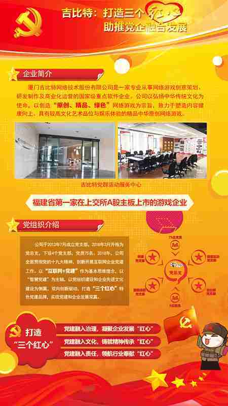 未来公司将全面学习贯彻习近平新时代中国特色社会主义思想和党的十九大精神,,,,持续强化“互联网+党建”的思维理念,,,,以“智慧党建”为主轴,,,以党组织建设和企业先进文化建设为侧翼,,双向创新驱动,,,,引领有信仰、、有情怀、、、有价值的新时代游戏研发运营,,,,在不断发展壮大的同时,,成为行业的“红色标杆”,,,,实现党建和企业发展双赢。。。